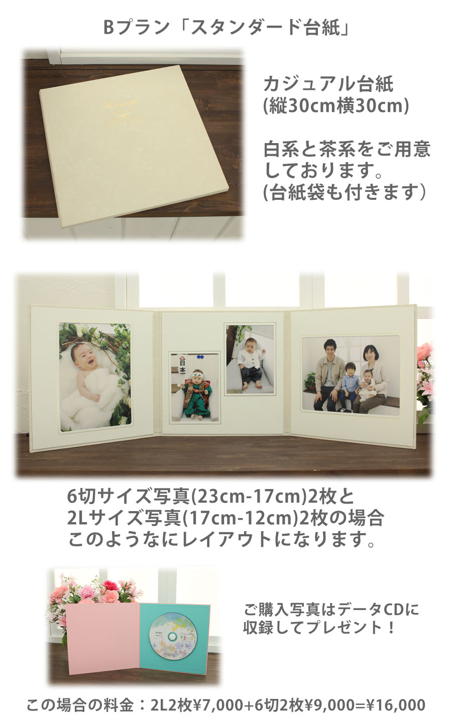 なおBプランはAプランにZOOMアルバム除いたスタンダードプランで通常のカジュアル台紙仕上げです。